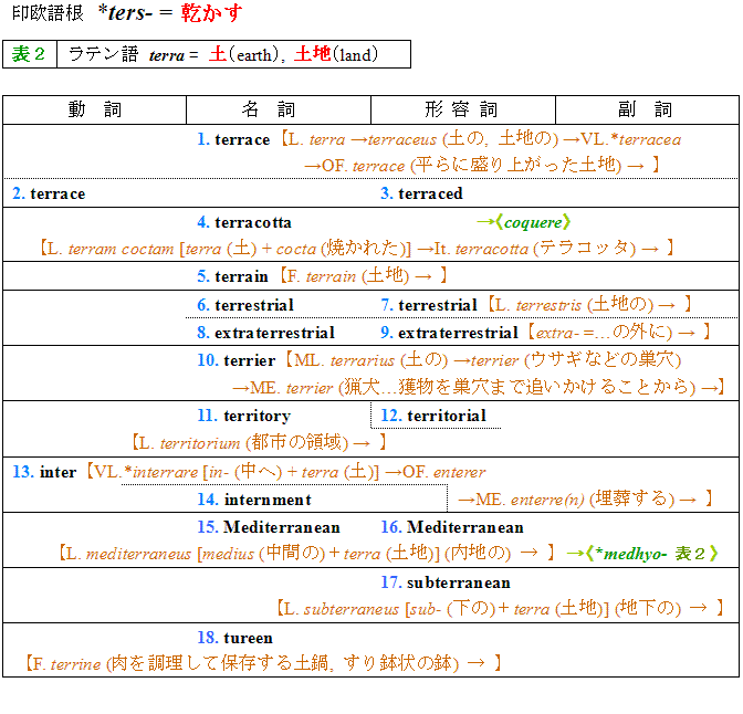 <*ters- 表1>* 4.terracotta <*coquere>16 10.terrier History of the Welsh Terrier Breed Wire Fox Terrier : history / origin 16.Mediterranean <*medhyo- 表2>9 A Mediterranean cruise